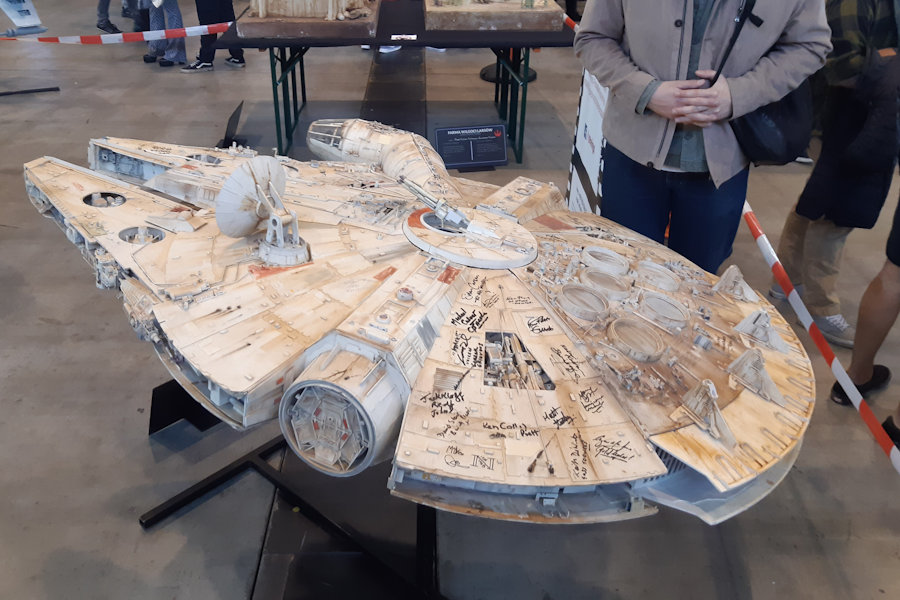 Millennium Falcon; ursprünglich ein Spielzeug-Modell von Hasbro in 1:48, umgebaut zu einem ansehnlichen Stand-Modell.