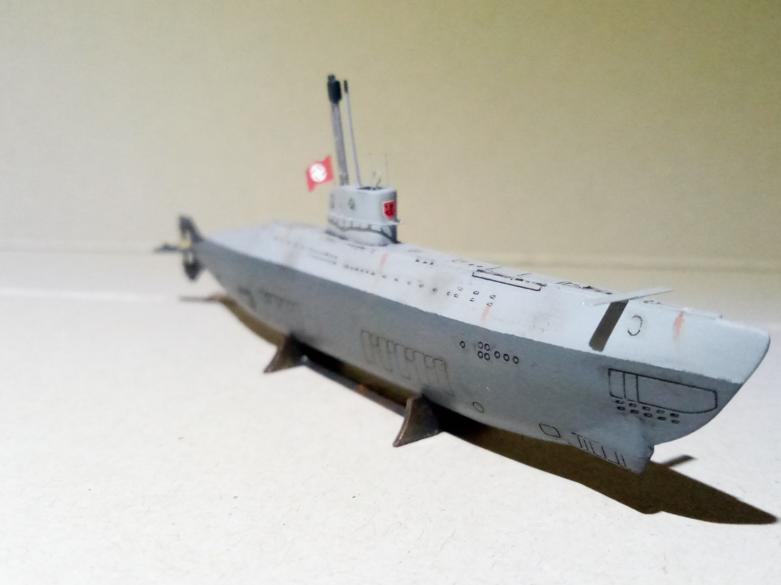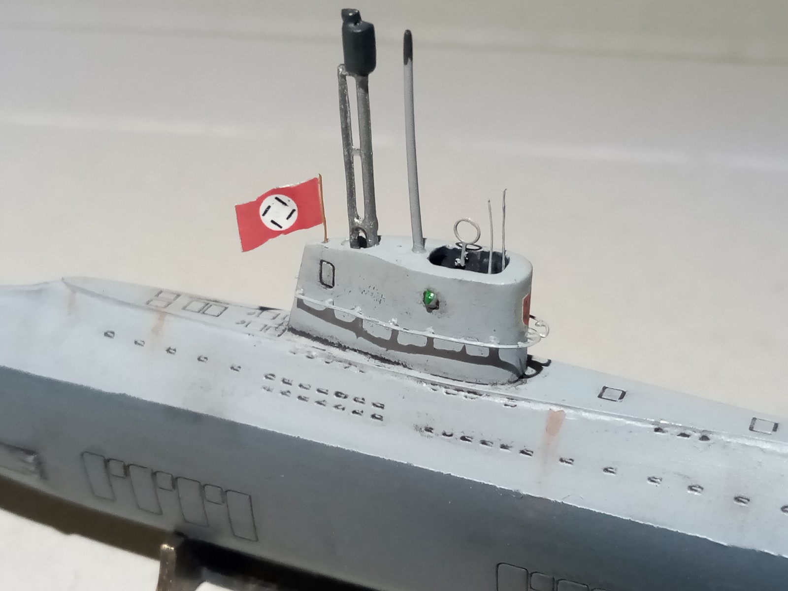 Am Modell wurden noch Antennen aus Draht, Seerohr aus gezogenem