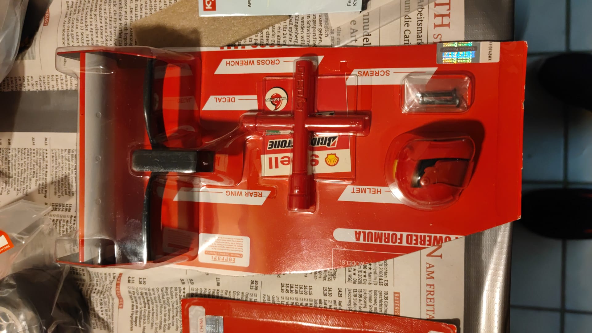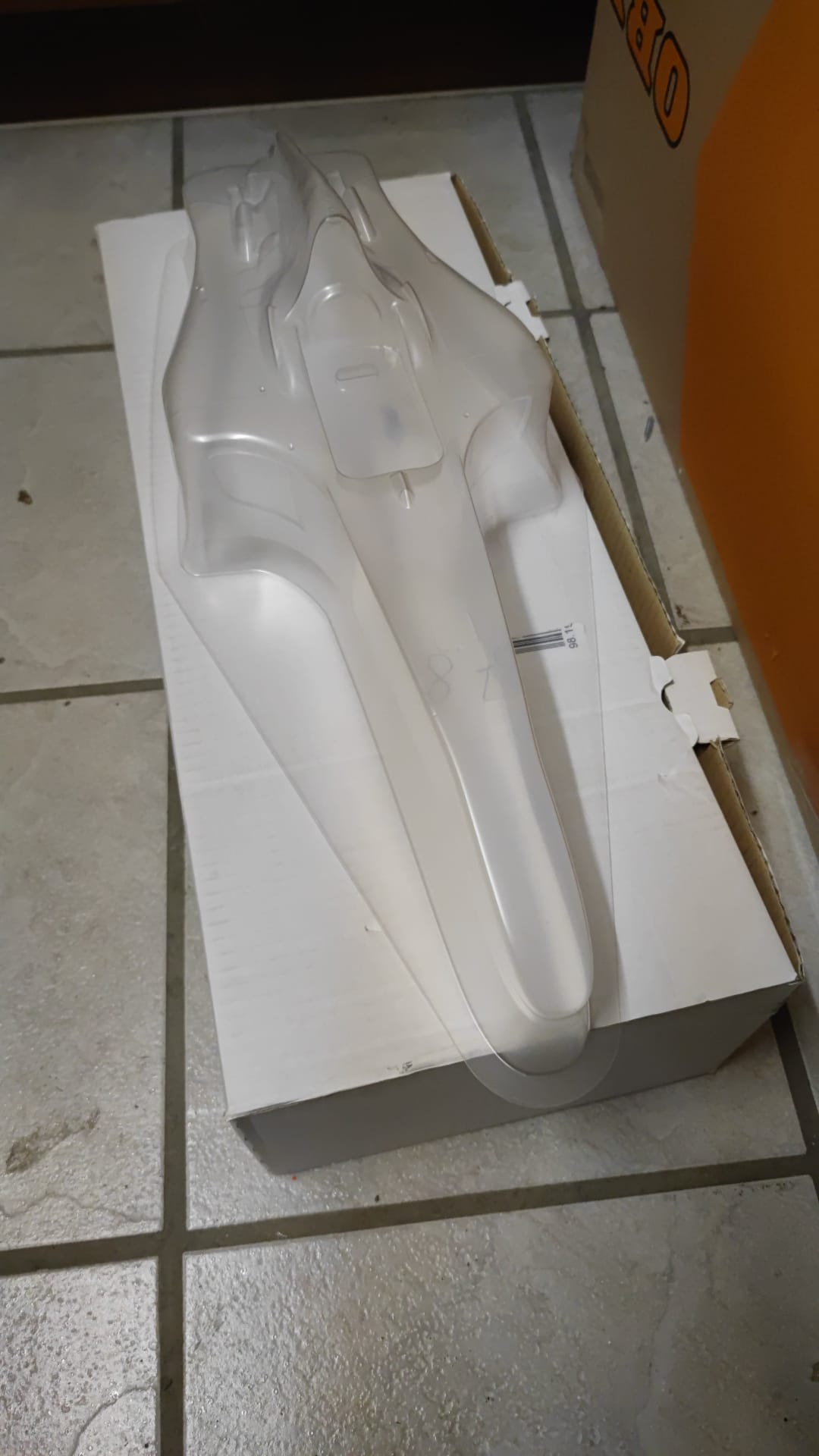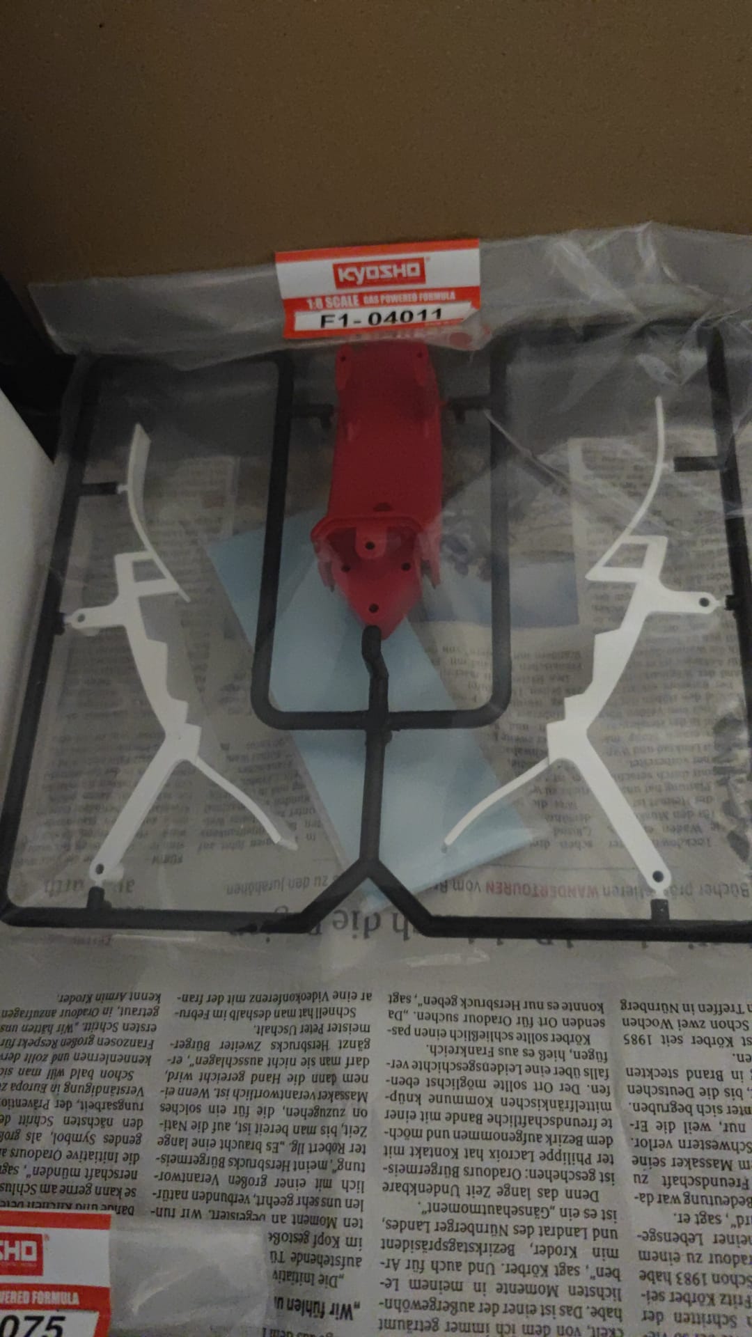 Was das durchsichtige Teil ist, keine Ahnung.... die rote Karosse dagegen ist aus Polycarbonat. Dafür sind auch die Decals dabei und die Karosserie werde ich auch nochmal selbst lackieren.