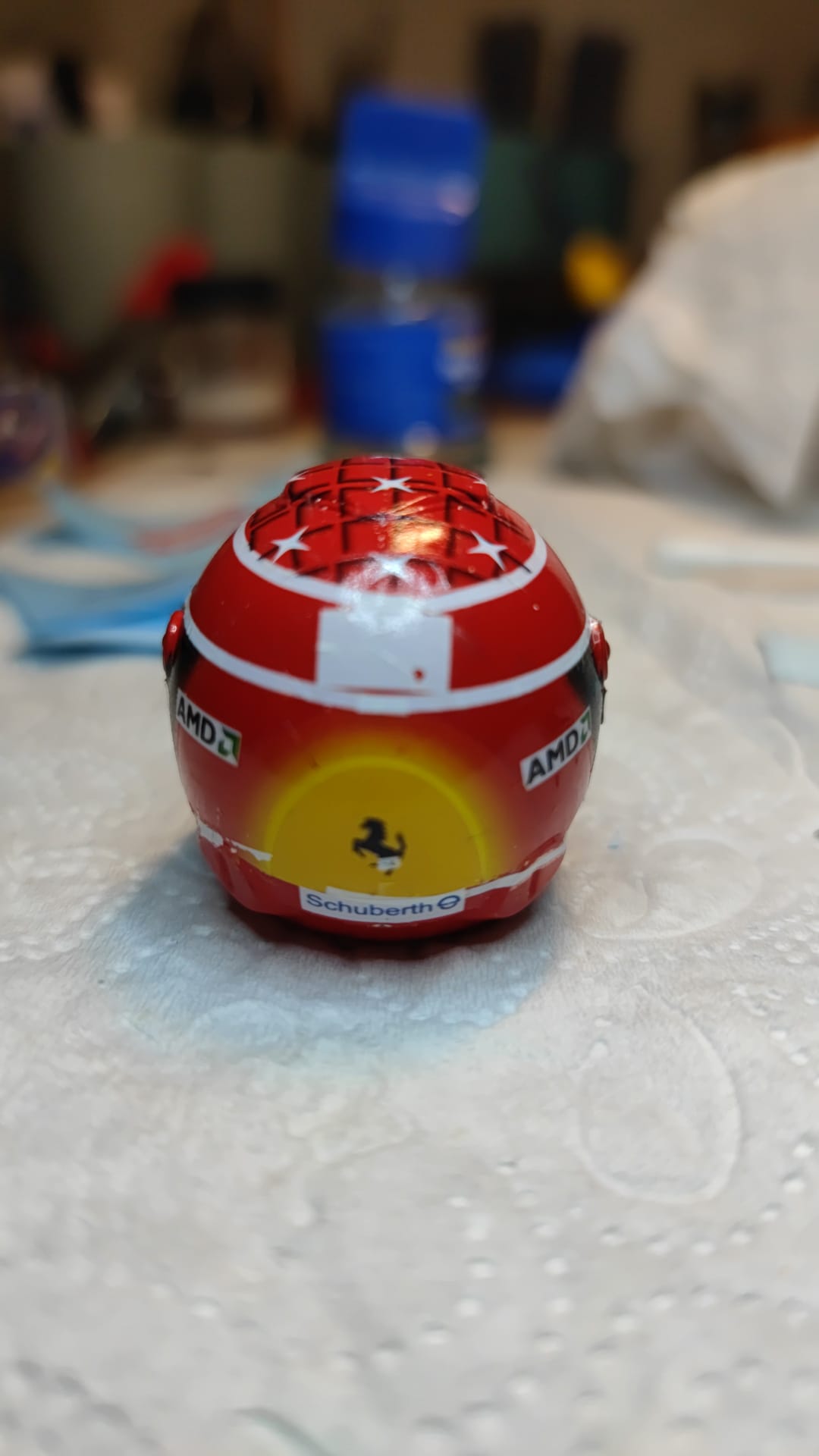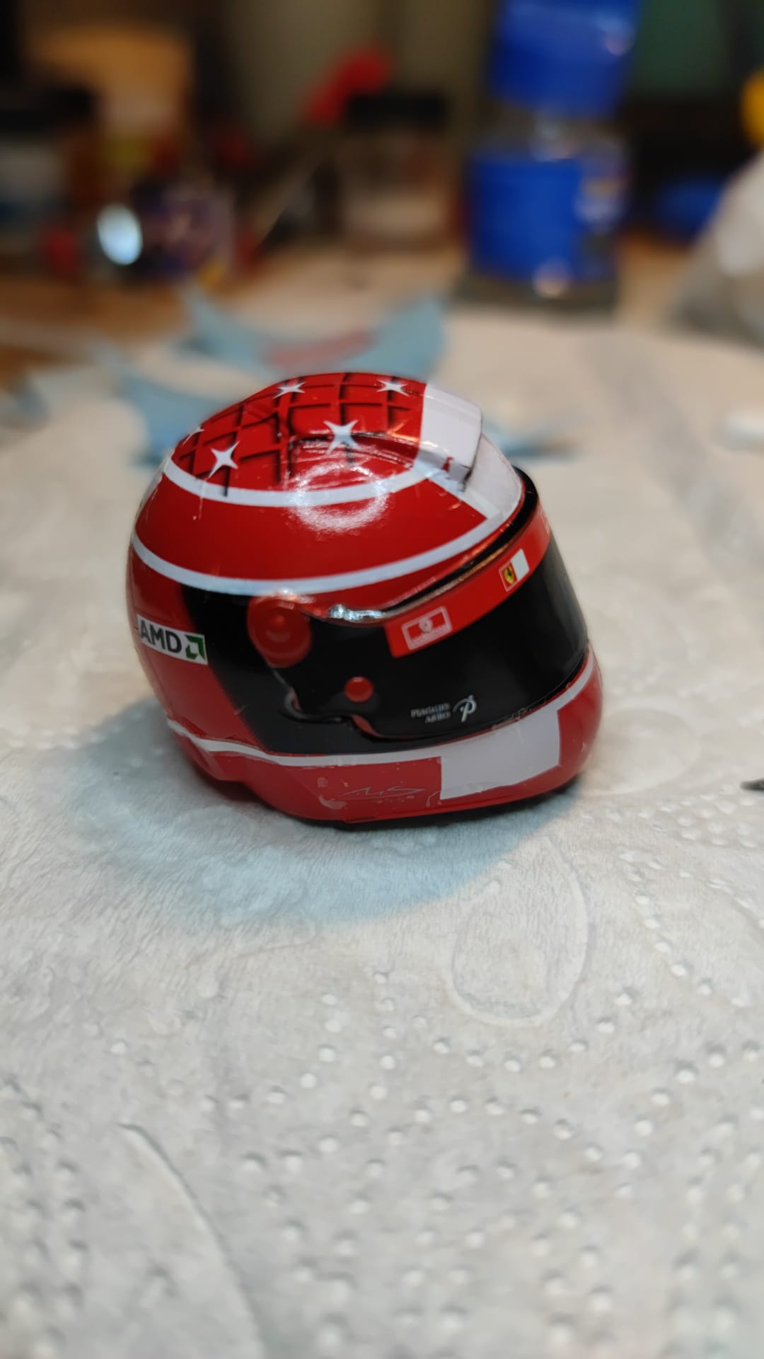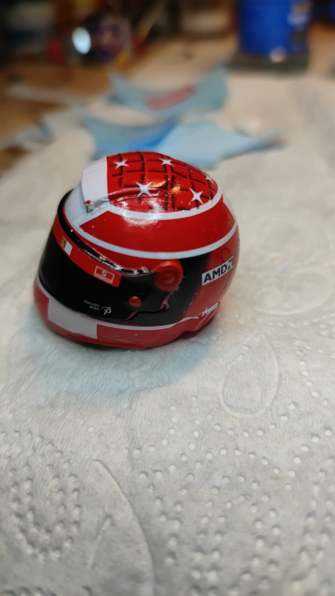 Bin aber schon total genervt. Die Decals für den Helm sind wohl überaltert und brechen bei der kleinsten Berührung oder kleben sofort und lassen sich nicht mehr verschieben. Ich kann grad nicht so viel essen wie ich ko..... will.