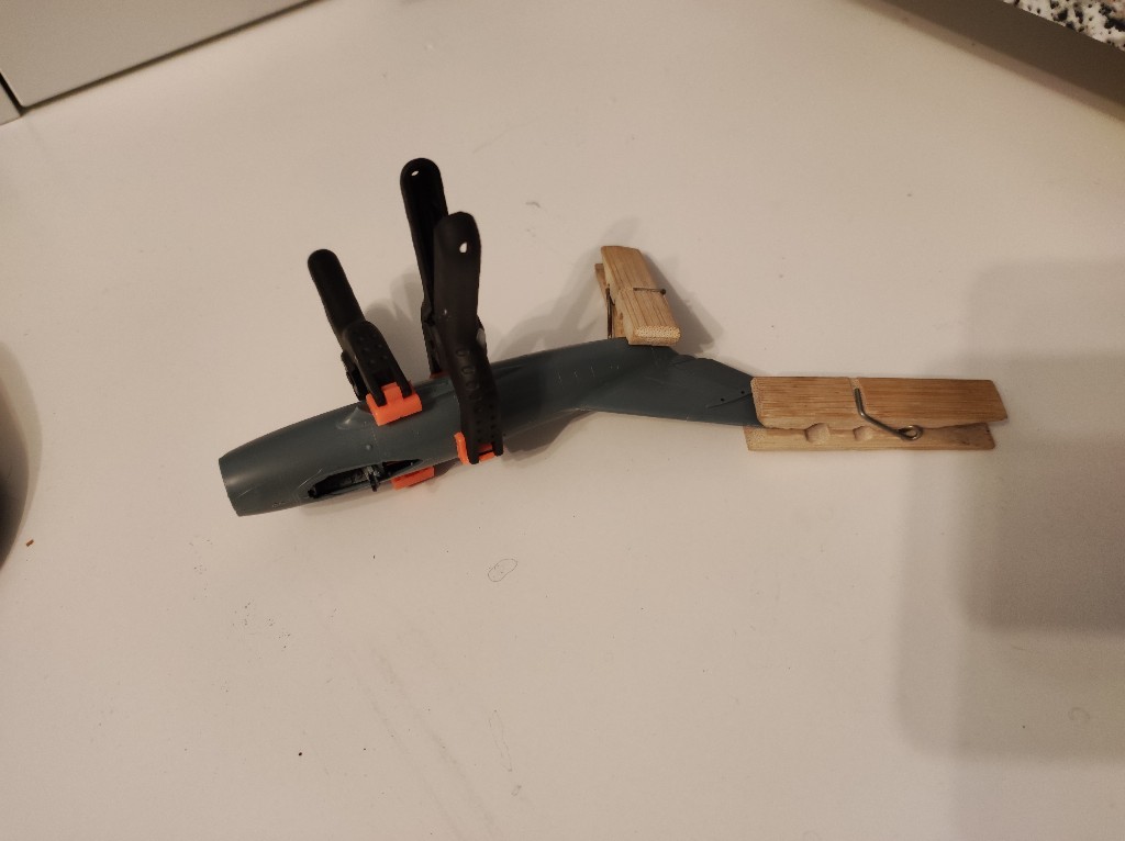 Dann sind beide Rumpfhälften zusammen gesetzt wurden und mit Klemmen Fixiert wurden.