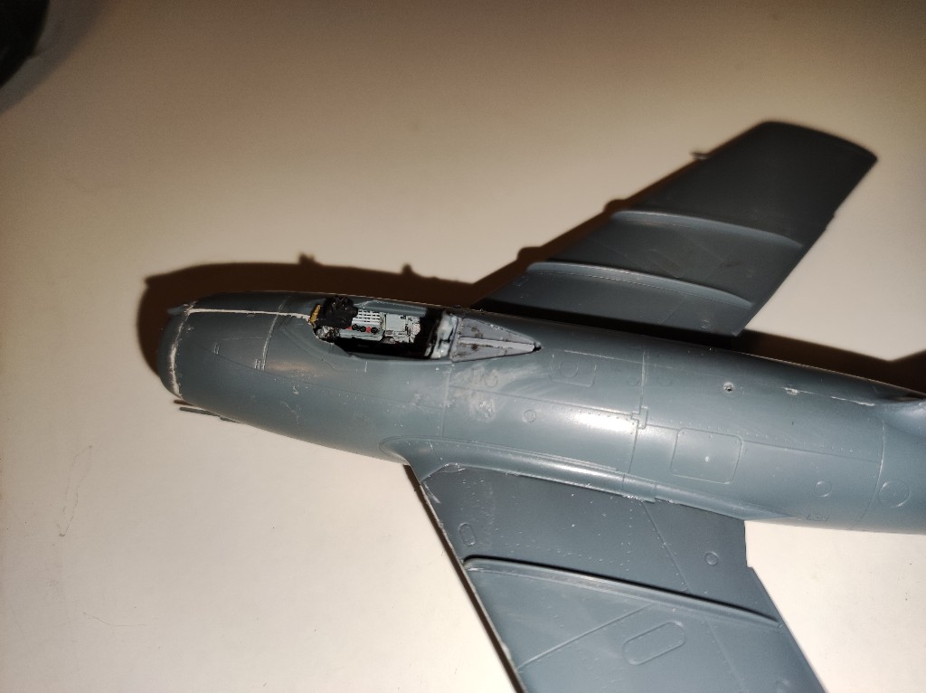 So nach dem die I-16 fertig ist und ich heute beim Jagdpanther nicht viel erledigen konnte, habe ich natürlich meine MiG ein wenig weiter gemacht. Das Cockpit war ja bereits weitgehend montiert, also habe ich das Gewicht in die verschieden Stellen eingeklebt. Außerdem ist das Instrumentenbrett ins Cockpit geklebt wurden