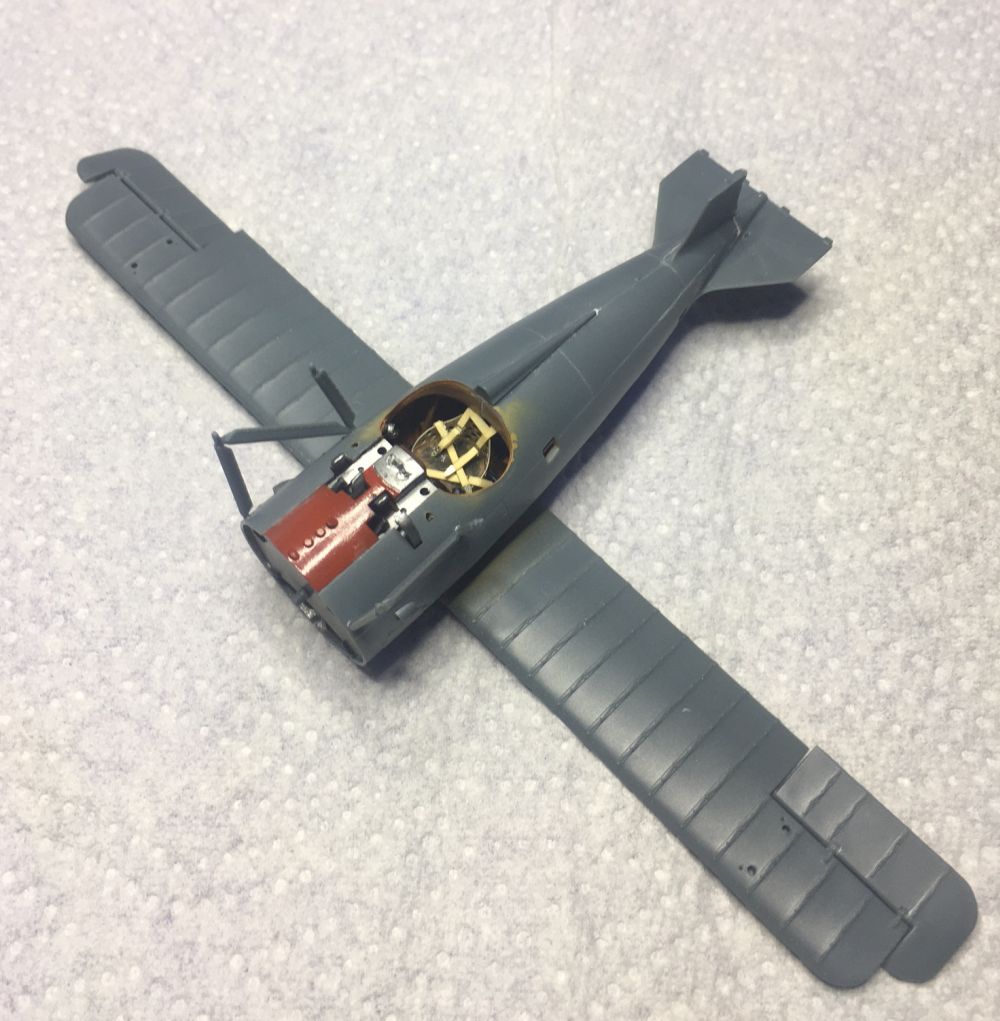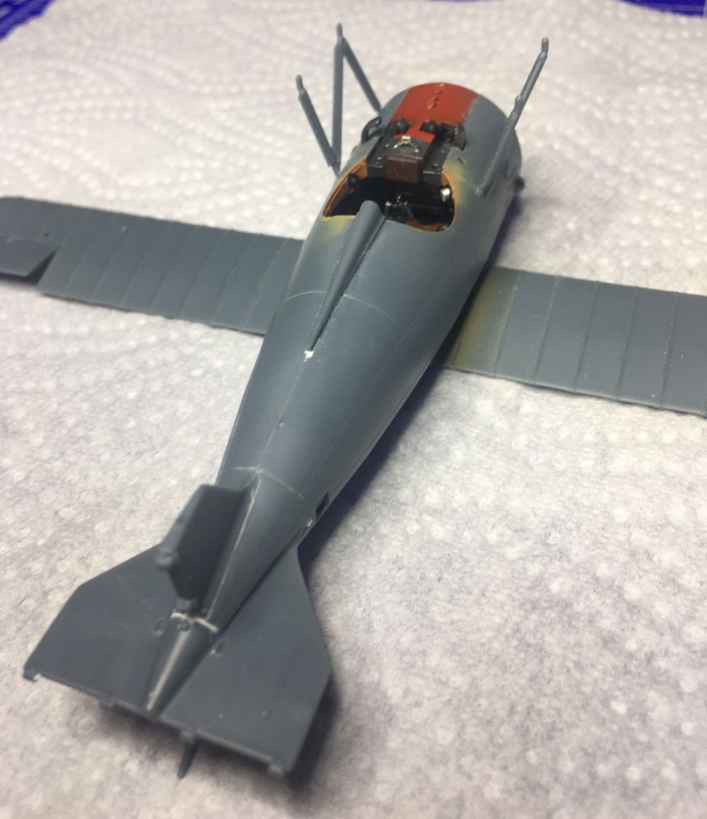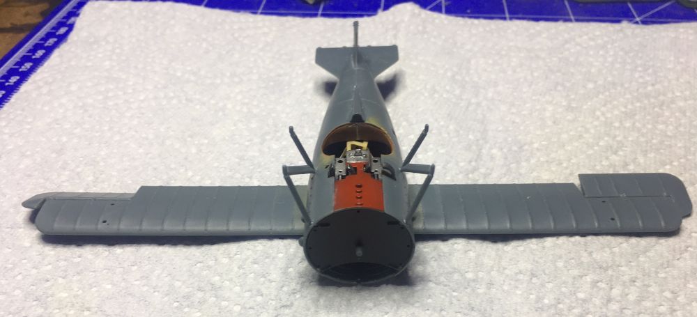 Außerdem wurden das Heck, die unteren Querruder und die Rumpfstreben für den Oberflügel angeklebt.