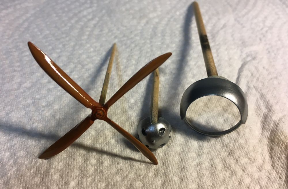 Den Propeller wurde mit dunkelgelb, Umbra gebrannt als Öl und Glanzlack vorbereitet.